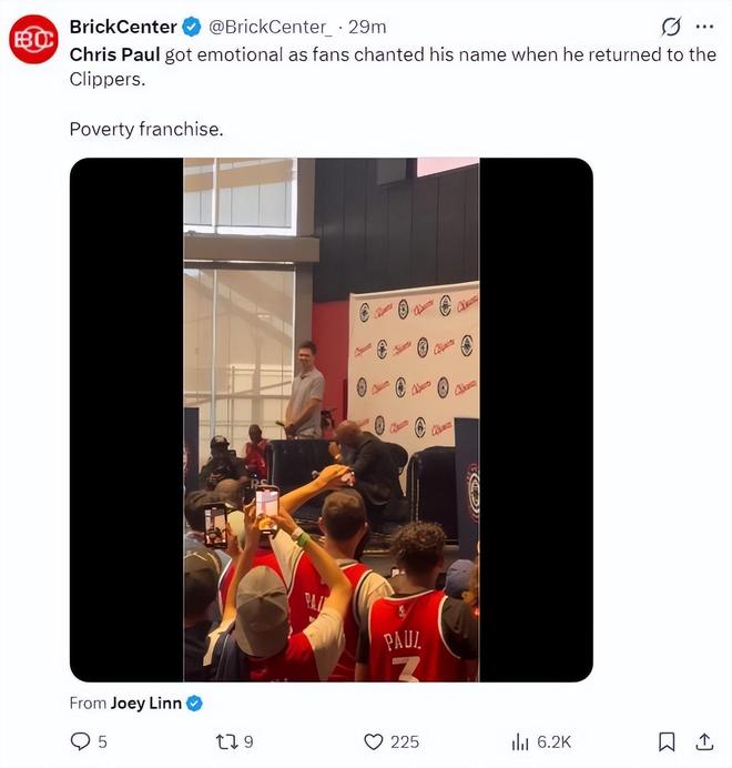 美媒BC曬出此前快船為保羅重返LAC的新聞發(fā)布會,很多球迷高呼克里斯,保羅當(dāng)時還偷偷抹淚,這是不是太諷刺了?