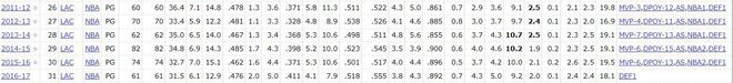 要知道保羅是快船隊(duì)史第一,目前助攻數(shù)(4023次)、搶斷數(shù)(1012次)、助攻王次數(shù)(4次)、搶斷王次數(shù)(3次)都是隊(duì)史第一。他在快船的6個賽季場均18.8分+9.8助攻+2.2搶斷全部進(jìn)入季后賽。